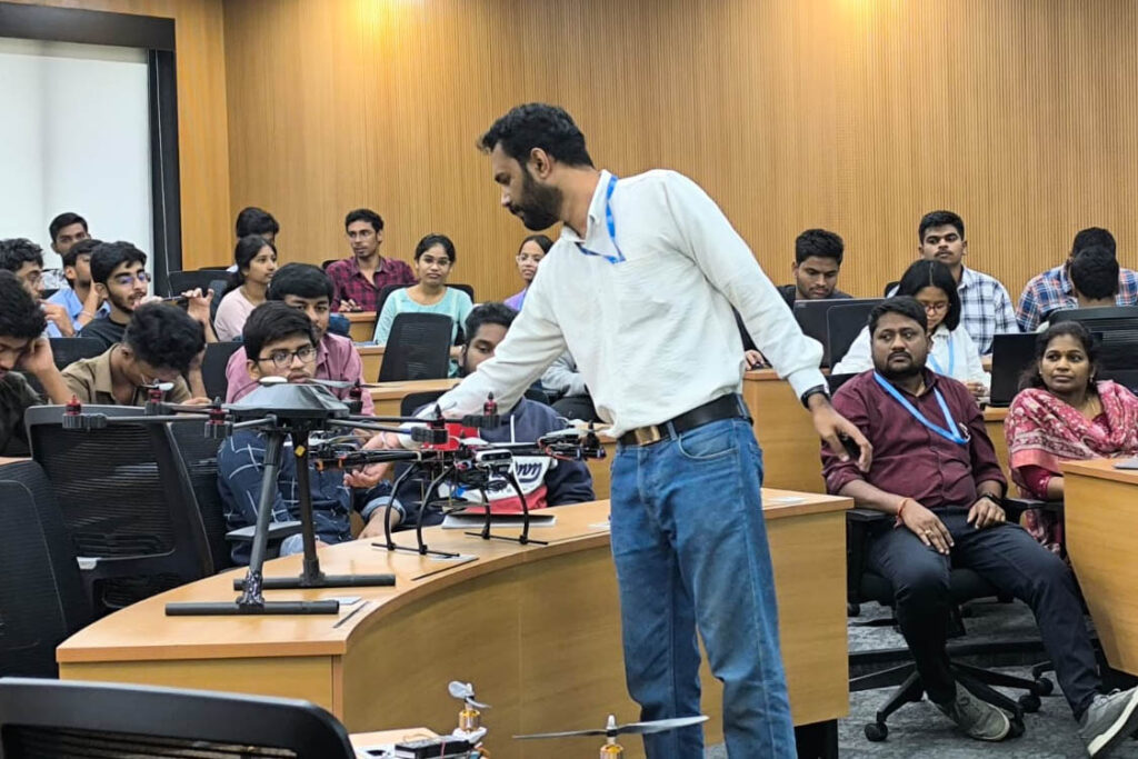 డ్రోన్ బూట్ క్యాంపు నాలుగో రోజు, గీతం విద్యార్థులు డ్రోన్ అసెంబ్లీపై స్వీయ అవగాహనను ఏర్పరచుకోవడంతో పాటు, వాటిని ఎగరవేయడంలో ఉత్సాహంగా పాల్గొన్నారు. నిపుణుల మార్గదర్శనంలో, ఏడు క్వాడ్ ఎక్స్ కాప్టర్లను విజయవంతంగా పరీక్షించారు. డ్రోన్ నిర్మాణం, పనితీరు పరీక్షలో విలువైన ఆచరణాత్మక అనుభవాన్ని పొందారు.జీపీఎస్ ఆధారిత హెక్సాకాప్టర్ ను ఎగరవేయడానికి విద్యార్థులకు అవకాశం ఇచ్చారు. ఇది పరిశ్రమ స్థాయి డ్రోన్లలో ఉపయోగించే అధునాతన నావివేషన్, విమాన స్థిరీకరణ, నియంత్రణ వ్యవస్థలను తెలుసుకునే వీలు కల్పించింది. దీనికి అదనంగా, ప్రాథమిక విమాన నియంత్రణలు, యుక్తి పద్ధతులను అర్థం చేసుకుంటూ, ఆత్మవిశ్వాసాన్ని పెంపొందించేలా బుల్లి (నానో) డ్రోన్ ఫ్లయింగ్ కార్యక్రమాలను నిర్వహించారు.రోజంతా, విద్యార్థులు డ్రోన్ అసెంబ్లీ, క్రమాంకనం, విమాన కార్యకలాపాలలో చురుకుగా పాల్గొన్నారు. అభివృద్ధి చెందుతున్న వైమానిక సాంకేతికతల పట్ల ఆసక్తి, సాంకేతిక ఉత్సుకత, ఉత్సాహాన్ని ప్రదర్శించారు.మొత్తంమీద, డ్రోన్ బూట్ క్యాంపు పరిశ్రమ ఆధారిత శిక్షణను అందించడమే గాక, డ్రోన్ సాంకేతికతలో సైద్ధాంతిక జ్జానాన్ని, వాస్తవ-ప్రపంచ వినియోగం మధ్య ఉన్న అంతరాన్ని సమర్థవంతంగా తగ్గించింది.