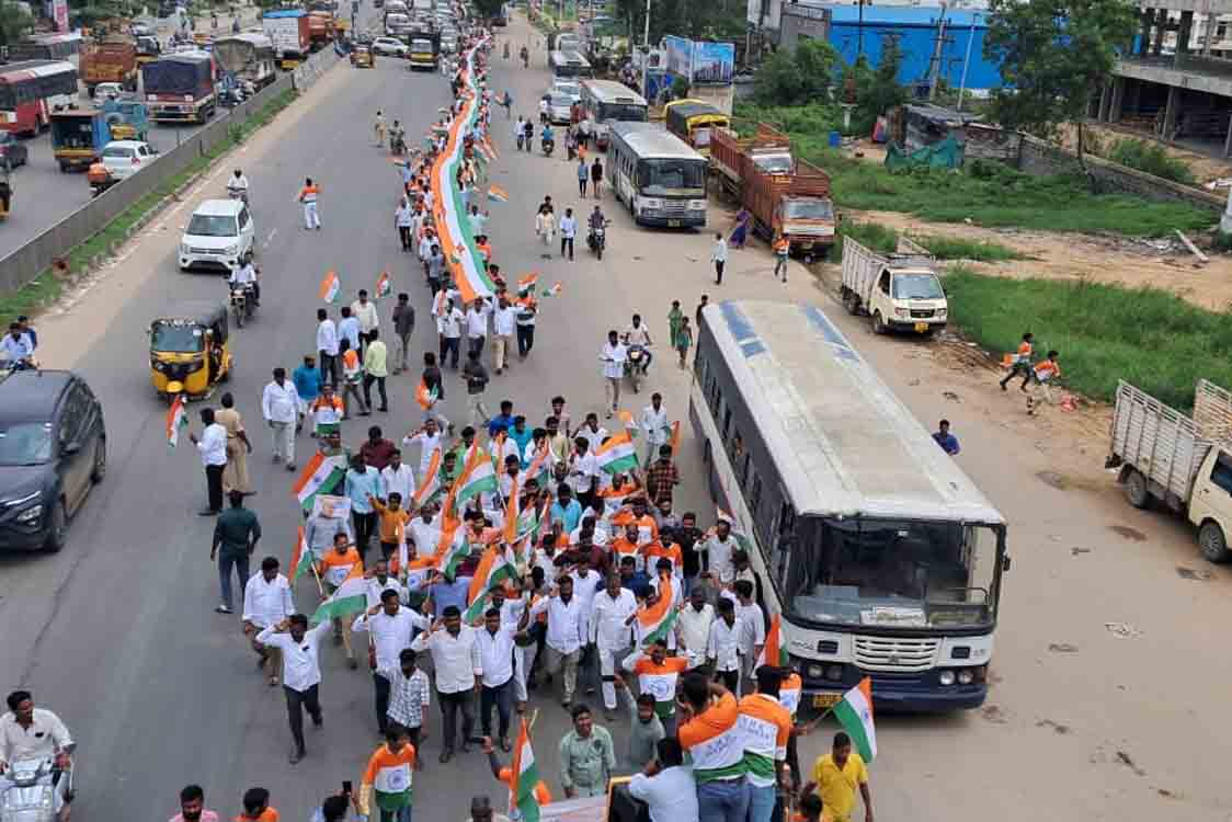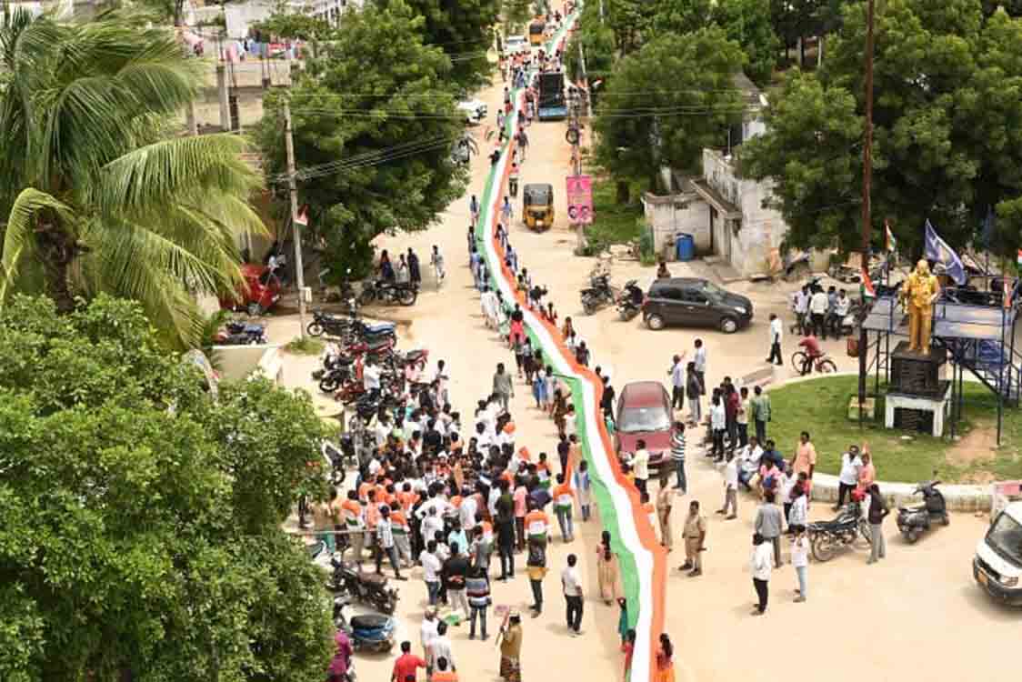 ముఖ్యమంత్రి కేసీఆర్ పిలుపు మేరకు ప్రతి ఒక్కరిలో దేశభక్తిని చాటేలా భారీ‌ జాతీయ జెండా ప్రదర్శన చేసినట్లు టీఆర్ఎస్ రాష్ట్ర నాయకులు, చిట్కుల్ గ్రామ సర్పంచ్ నీలం మధు ముదిరాజ్ అన్నారు. ముఖ్యమంత్రి కేసీఆర్ ఇచ్చిన పిలుపుమేరకు 75 సంవత్సరాల భారత స్వతంత్ర్య వజ్రోత్సవ వేడుకల్లో భాగంగా చిట్కుల్ అంబేద్కర్ విగ్రహం నుంచి బయలుదేరి గ్రామ రహదారి నుంచి జాతీయ రహదారి మీదుగా ఇస్నాపూర్ చౌరస్తా వరకు చిట్కుల్ సర్పంచ్ నీలం మధు ముదిరాజ్ నేతృత్వంలో ఎన్ఎంఆర్ యువసేన ఆధ్వర్యంలో తిరంగా యాత్రలో భాగంగా 750 మీటర్ల జాతీయ పతాకాన్ని విద్యార్థులు పట్టుకుని దేశభక్తికి సంబంధించిన నినాదాలు చేస్తూ భారీ ర్యాలీ నిర్వహించారు.