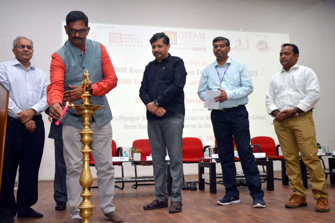 దీనికితోడు పాత పెన్షన్ విధానాన్ని అమలు చేయాలని పలు రాష్ట్రాలు యోచిస్తున్నాయని , అదే జరిగితే ఇక మన ఆర్థిక వ్యవస్థ గాడిన పడడం కష్టమేనని ప్రొఫెసర్ భానుమూర్తి పేర్కొన్నారు . ‘ కోవిడ్ మహమ్మారి , అంతర్జాతీయ ఆర్థిక సంక్షోభం , భారత ఆర్థిక వ్యవస్థ భవిష్యత్తు’పై జవహర్లాల్ నెహ్రూ విశ్వవిద్యాలయం ప్రొఫెసర్ సూరజిత్ మజుందార్ కీలకోపన్యాసం చేశారు . సదస్సు నిర్వాహకుడు డాక్టర్ మందార్ వి.కులకర్ణి స్వాగతోపన్యాసం చేయగా , సీఎస్ఓకి చెందిన డాక్టర్ సత్యం సుంకర వందన సమర్పణ చేశారు . ఈ ప్రారంభోత్సవంలో గీతం హైదరాబాద్ అదనపు ఉపకులపతి ప్రొఫెసర్ డీఎస్ రావు , ఆంగ్ల విభాగాధిపతి ప్రొఫెసర్ డీఆర్పీ చంద్రశేఖర్ , పలువురు అధ్యాపకులు , విద్యార్థులు పాల్గొన్నారు . శుక్రవారం సాయంత్రం వరకు ఈ సదస్సు కొనసాగనుంది .