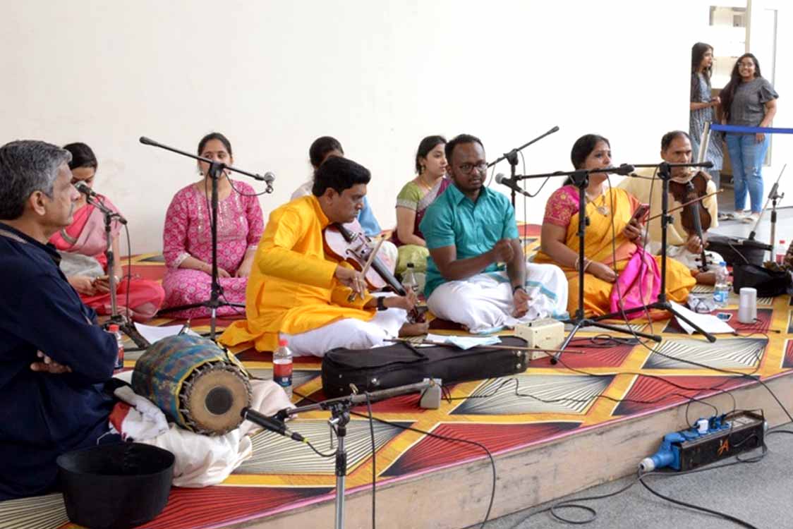గీతం స్కూల్ ఆఫ్ హ్యుమానిటీస్ అండ్ సోషల్ సైన్సెస్ (జీఎస్ హెచ్ ఎస్ ) లోని ఫైన్ అండ్ ఫెర్ఫార్మింగ్ ఆర్ట్స్ విభాగం ఆధ్వర్యంలో ప్రముఖ స్వరకర్త త్యాగరాజ స్వామి ఆరాధనోత్సవాన్ని మంగళవారం ఘనంగా నిర్వహించారు. ఈ వేడుకలను గీతం హైదరాబాద్ అదనపు ఉపకులపతి ప్రొఫెసర్ డీ.ఎస్.రావు, జీఎస్ హెచ్ ఎస్ డైరక్టర్ సన్నీ గోస్మాన్ జోస్ జ్యోతి ప్రజ్వలన చేసి లాంఛనంగా ప్రారంభించారు. ఈ సందర్భంగా వారు ప్రసంగిస్తూ, మనోహరమైన ప్రదర్శనల పట్ల తన హర్షాతిరేకాలను వెలిబుచ్చారు. త్యాగరాజ పంచరత్న కృతులలోని అద్భుతమైన రాగాలతో ప్రేక్షకులను లీనం చేయడం ఈ కార్యక్రమం ప్రధాన లక్ష్యం. ఆనంద మురళి, శ్వేత ప్రసాద్, కె.చంద్రరావు, లాస్య ప్రియ, మనోజ్ఞ, జ్యోతర్మయిల మృదు మధుర గాత్రానికి జీఎస్ హెచ్ ఎస్ అధ్యాపకులు డాక్టర్ వైలలితా సింధూరి, డాక్టర్ సింధూజ, యోషిత బుద్ధ (కూచిపూడి), డాక్టర అక్షయ జనార్దన్ (భరతనాట్యం), డాక్టర్ మెథైలి అనూస్ (మోహినీయాట్టం)ల నృత్య ప్రదర్శనలు తోడే సంగీత కచేరీ ఆహుతులందరినీ విశేషంగా అలరించింది. చప్పట్లతో ప్రాంగణమంతా ప్రతిధ్వనించింది.వాయిద్యకారులు ఐ.ఏ. రేణుకా ప్రసాద్, టీ.పీ.బాలసుబ్రహ్మణ్యం (మృదంగం), కేఎల్ఎన్ మూర్తి (వయొలిన్), ఆనంద మురళి (గానం) తో సహకారం అందించారు. త్యాగరాజ స్వరకల్పనల అందం, సాంస్కృతిక గొప్పతనాన్ని ప్రదర్శిస్తూ సాగిన ఈ ఆరాధన విజయవంతంగా ముగిసి, ప్రేక్షకులకు ముధురానుభూతిని మిగిల్చింది.