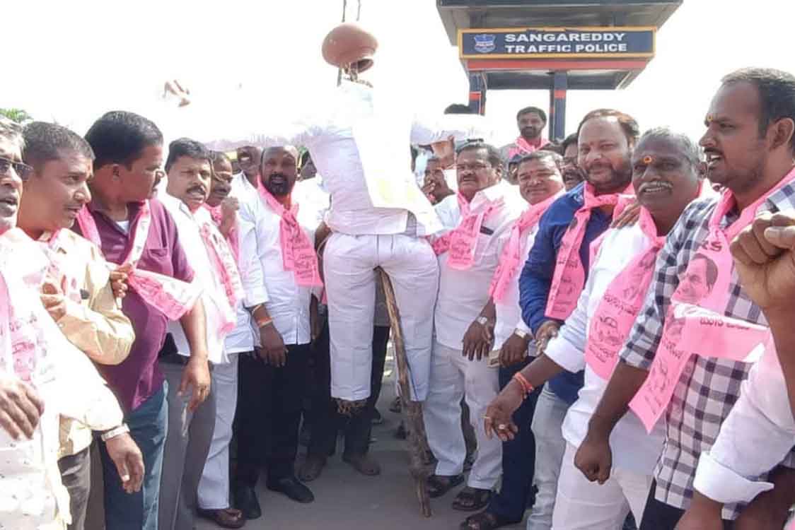 పటాన్చెరు పట్టణంలో ప్రధాని మోదీ దిష్టిబొమ్మను దగ్ధం చేసిన టిఆర్ఎస్ పార్టీ శ్రేణులు