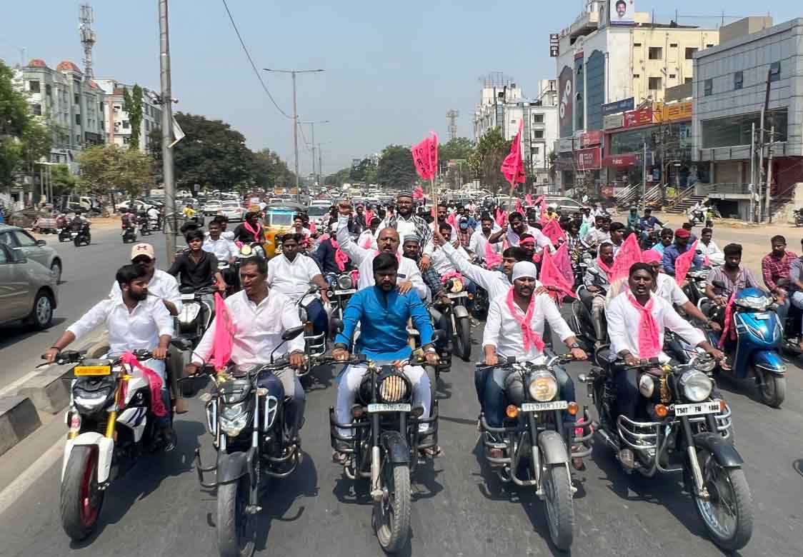 ఈ నెల 27వ తేదీన టిఆర్ఎస్ పార్టీ ఆవిర్భావ దినోత్సవం సందర్భంగా మియపూర్ నరేం గార్డెన్ లో నిర్వహిస్తున్న శేరిలింగంపల్లి నియోజకవర్గం విస్తృత స్థాయి సర్వసభ్య సమావేశానికి చందానగర్ డివిజన్ కార్పోరేటర్ మంజుల రఘునాథ్ రెడ్డీ మరియు కార్యకర్తలు పెద్ద ఎత్తున బైకు ర్యాలీగా బయలు దేరారు . అనంతరం మంజుల రఘునాథ్ రెడ్డి మాట్లాడుతూ కేసీఆర్ నాయకత్వంలో తెలంగాణ రాష్ట్రాన్ని సాధించి తెలంగాణను అభివృద్ది పథంలో ముందుకు తీసుకెళ్తున్న, మన ముఖ్యమంత్రి తెలంగాణలో తిరుగులేని రాజకీయ పార్టీగా అవతరించిందని, తెలంగాణ రాష్ట్ర సమితి పార్టీ ఉద్యమ స్థానం నుంచి రాజకీయ పార్టీగా మార్చిన ఘనుడు తెలంగాణ గాంధీ కేసీఆర్ అని మంజుల రఘునాథ్ రెడ్డి అన్నారు. కార్యక్రమంలో స్థానిక యువజన టీఆరెఎస్ నాయకులు దొంతి కార్తీక్ గౌడ్,మరియు కార్యకర్తలు పెద్దఎత్తున పాల్గొన్నారు.
