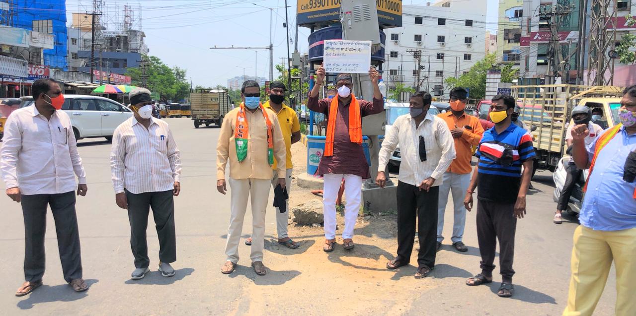 పశ్చిమ బెంగాల్‌లో బీజేపీ కార్యకర్తలపైదాడులకు పాల్పడిన టీఎంసీ పార్టీ నాయుకుల తీరును వ్యతిరేకిస్తూ హైదరాబాద్ ఆల్విన్ ఎక్స్ రోడ్ వద్ద బీజేపీ నేతలు నిరసన వ్యక్తం చేశారు .శేరిలింగంపల్లి డివిజన్ అధ్యక్షులుశ్రీధర్ రావు , బీజేపీ రాష్ట్రకార్యవర్గ సభ్యులు జ్ఞానేంద్రప్రసాద్ కోవిద్ నిబంధనలు పాటిస్తూ తమ నిరసనను తెలిపారు .