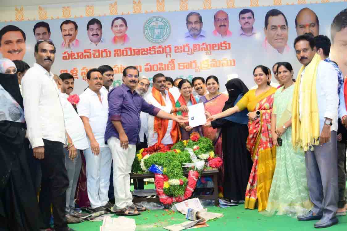 గురువారం సాయంత్రం పటాన్చెరువు పట్టణంలోని జిఎంఆర్ కన్వెన్షన్ సెంటర్లో ఏర్పాటు చేసిన సమావేశంలో..పటాన్చెరు నియోజకవర్గ పరిధిలోని వివిధ మండలాలలో పనిచేస్తున్న 100 మంది జర్నలిస్టులకు ప్రెస్ అకాడమీ చైర్మన్ అల్లం నారాయణ, నియోజకవర్గ ప్రజాప్రతినిధులతో కలిసి తోఎమ్మెల్యే జిఎంఆర్ ఇళ్ల స్థలాల పట్టాలను పంపిణీ చేశారు. వీరితోపాటు కాజిపల్లి గ్రామానికి చెందిన 30 మంది రోడ్డు నిర్వాస బాధితులకు పట్టాలను అందచేశారు.