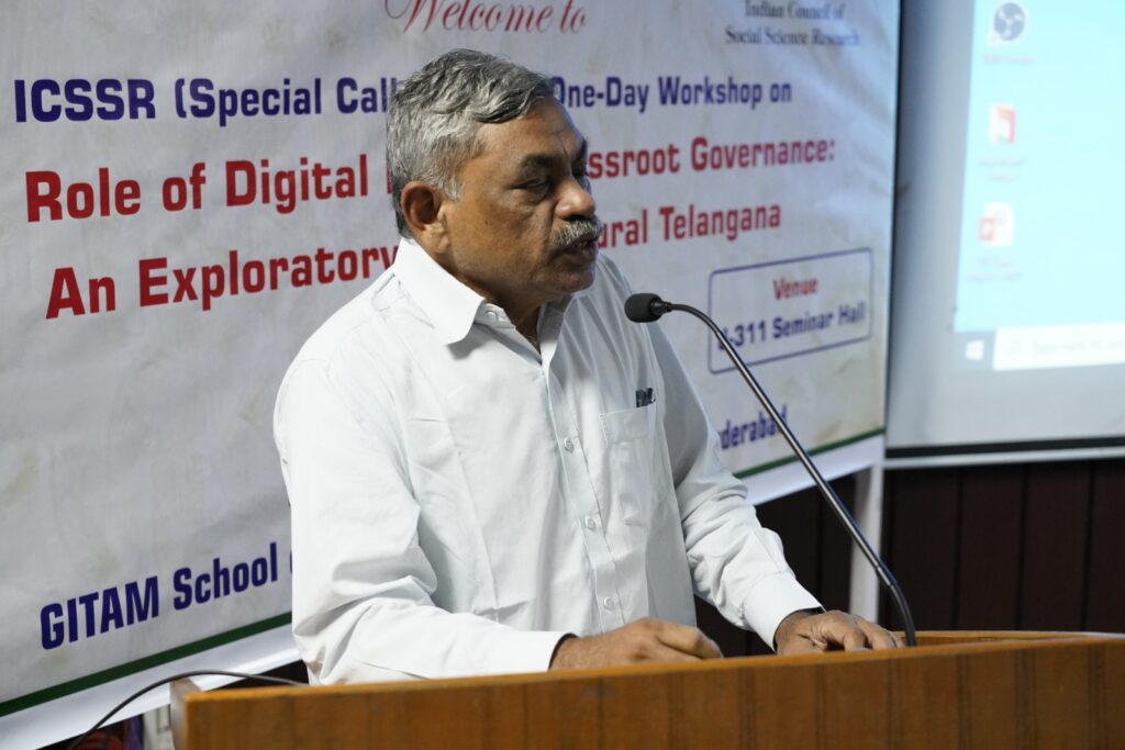 గ్రామీణ ప్రాంతాలలోని పాలనపై డిజిటల్ ఇండియా ప్రభావం, తెలంగాణలో అన్వేషణాత్మక అధ్యయనం అనే అంశంపై గీతం డీమ్డ్ విశ్వవిద్యాలయం హైదరాబాద్ లో ఒకరోజు కార్యశాలను నిర్వహించినట్టు ప్రాజెక్టు డెరైక్టర్, గీతం అధ్యాపకుడు డాక్టర్ గుర్రం అశోక్ బుధవారం విడుదల చేసిన ప్రకటనలో వెల్లడించారు. ఇండియన్ కౌన్సిల్ ఆఫ్ సోషల్ సైన్సెస్ రీసెర్చ్ (ఐసీఎస్ఎస్ఆర్) సౌజన్యంతో దీనిని నిర్వహించినట్టు తెలిపారు.పాలిటికల్ సైన్స్ విభాగం ఆధ్వర్యంలోని నిర్వహించిన ఈ కార్యక్రమంలో గీతం స్కూల్ ఆఫ్ హ్యుమానిటీస్ అండ్ సోషల్ సైన్సెస్ (జీఎసోచ్ఎస్) డీన్ ప్రొఫెసర్ కామయ్య ముఖ్య అతిథిగా పాల్గొని, అట్టడుగు స్థాయిలో డిజిటల్ ఇండియా విధాన పరిశోధన అవశ్యకతను నొక్కిచెప్పారన్నారు. ఈ కార్యక్రమానికి అధ్యక్షత వహించిన జీఎహెచ్ఎస్ డెరైక్టర్ సన్నీ జోస్ వర్కుషాప్ కు హాజరైన అతిథులను స్వాగతించినట్టు తెలిపారు.అట్టడుగు వర్గాలను సాధికారపరచడంలో డిజిటల్ ఇండియా యొక్క సామర్థ్యాన్ని మౌలానా అబుల్ కలాం ఉర్దూ విశ్వవిద్యాలయం ప్రొఫెసర్ నిషినికాంత్ కోల్గే ప్రముఖంగా ప్రస్తావించడంతో పాటు ఇటువంటి కార్యక్రమాలకు మహాత్మా గాంధీ మద్దతు గురించి ప్రత్యేకంగా ప్రస్తావించారన్నారు. గ్రామీణ తెలంగాణాలో లింగ భేదం, డిజిటల్ టెక్నాలజీలపై హెదరాబాద్ కేంద్రీయ విశ్వవిద్యాలయం ప్రొఫెసర్ షీలా సూర్యనారాయణన్ లోతెన అవగాహన కల్పించినట్టు ఆ ప్రకటనలో పేర్కొన్నారు.ప్రాజెక్టు డైరెక్టర్ హోదాలో తాను పరిశోధనా ఫలితాలను, అధ్యయనం సిఫారసులను సమర్పించగా, వాటిపై చర్చకు బిట్స్ హైదరాబాద్ ప్రొఫెసర్ భీమేశ్వర్రెడ్డి, డాక్టర్ కృష్ణారెడ్డి చిట్టేడి రిసోర్స్ పర్సన్లుగా వ్యవహరించినట్టు తెలియజేశారు. దీనికి అదనంగా నలుగురు ప్రతివాదులు, క్షేత్రస్థాయి పరిశీలకులు ఈ కార్యశాలలో పాల్గొని తమ అనుభవాలను పంచుకున్నట్టు వెల్లడించారు. గీతం ఆధ్యాపకులు, విద్యార్థులు పలువురు ఈ కార్యశాలలో చురుకుగా పాల్గొని విజయవంతం చేసినట్టు తెలిపారు.