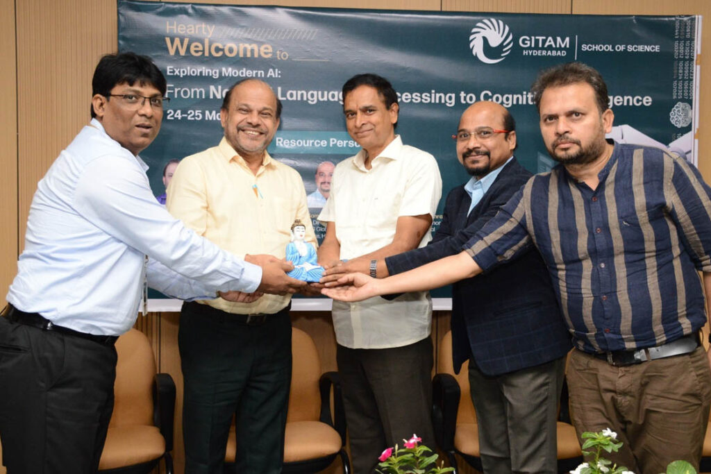 హైదరాబాదులోని గీతం స్కూల్ ఆఫ్ సైన్స్ కు చెందిన గణిత, గణాంక శాస్త్ర విభాగం ‘ఆధునిక ఏఐ అన్వేషణ: సహజ భాషా ప్రాసెసింగ్ నుంచి అభిజ్జా మేధస్సు వరకు’ పేరిట నిర్వహిస్తున్న రెండు రోజుల ఆచరణాత్మక కార్యశాలను మంగళవారం ఉదయం లాంఛనంగా ప్రారంభించారు. ఈ కార్యక్రమంలో హైదరాబాదు విశ్వవిద్యాలయానికి చెందిన ప్రొఫెసర్ శిబా ఉద్గాట ముఖ్య అతిథిగా, కెపీఎమ్ జీ గ్లోబల్ డెలివరీ సెంటర్, హైదరాబాదుకు చెందిన డాక్టర్ కె. సంపత్ కుమార్ ఆత్మీయ అతిథిగా పాల్గొన్నారు.ముఖ్య అతిథి మాట్లాడుతూ, మానవ మెదడు యొక్క అద్భుతమైన సామర్థ్యాలను, దక్షతను వివరిస్తూ, మానవ మేధస్సు అనేక అంశాలలో కృత్రిమ మేధస్సును అధిగమిస్తూనే ఉందని నొక్కి చెప్పారు. విద్యార్థులంతా ఆత్మవిశ్వాసంతో ఉండాలని, నిరంతరం నేర్చుకోవాలని, ఏఐని సామాజిక ప్రయోజనానికి ఒక సాధనంగా బాధ్యతాయుతంగా ఉపయోగించాలని ప్రొఫెసర్ ఉద్గాట ప్రోత్సహించారు.ఏఐ యొక్క వేగవంతమైన పరిణామం గురించి గౌరవ అతిథి ప్రసంగిస్తూ, ‘అటెన్షన్ ఈజ్ ఆల్ యు నీడ్’ వంటి ప్రాథమిక పరిశోధనల నుంచి చాట్ జీపీటీ వంటి ఆధునిక అప్లికేషన్ల వరకు దాని పురోగతులను వివరించారు.