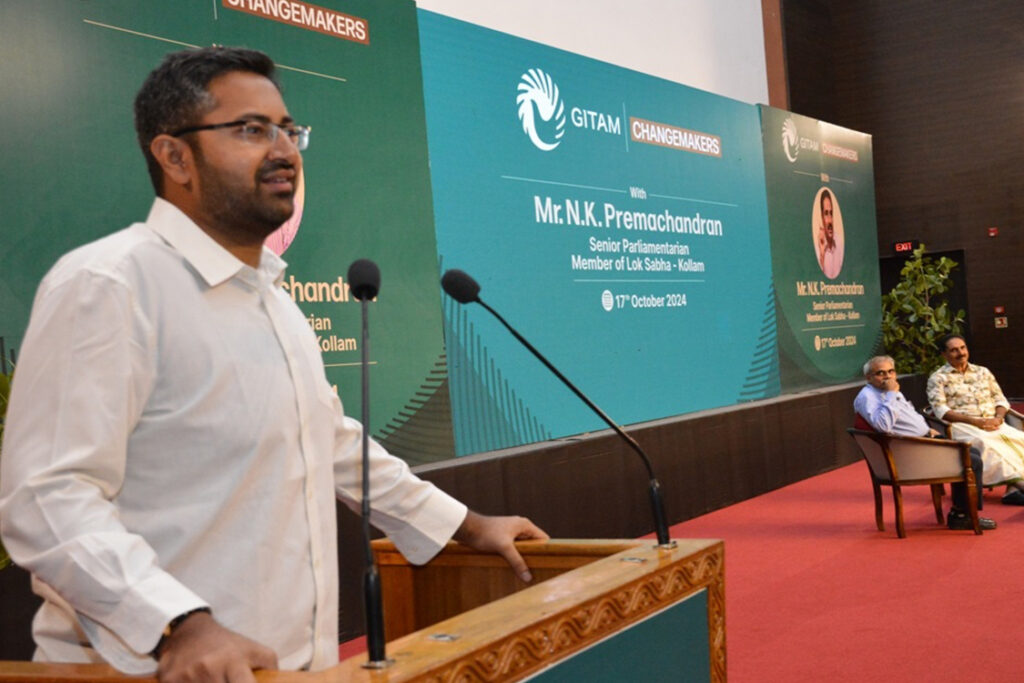 జాతి భవిష్యత్తును తీర్చిదిద్దడంలో విద్యార్థుల పాత్ర ఎంతో కీలకమని, రాజకీయాలను యువత సీరియస్-గా తీసుకోవాలని కొల్లం లోక్-సభ సభ్యుడు, రెవల్యూషనరీ సోషలిస్టు పార్టీ కేంద్ర కార్యదర్శి ఎన్.కె. ప్రేమచంద్రన్ పిలుపునిచ్చారు. చేంజ్-మేకర్స్ పేరిట గీతం డీమ్డ్ విశ్వవిద్యాలయం, హైదరాబాద్ నిర్వహిస్తున్న కార్యక్రమంలో గురువారం ఆయన అతిథిగా పాల్గొన్నారు. పరివర్తన కార్యక్రమాలపై దృష్టి సారించి, నాయకత్వం, భారతదేశ భవిష్యత్తుపై తనకున్న లోతైన అవగాహనను గీతం విద్యార్థులతో పంచుకున్నారు.జాతి భవిష్యత్తును తీర్చిదిద్దడంలో విద్యార్థుల పాత్ర ఎంతో కీలకమని, రాజకీయ వ్యవహారాల పట్ల యువత విముఖత చూపడం సరికాదన్నారు. రాజకీయ, పార్లమెంటరీ విషయాలలో వారికి అవగాహన కల్పించడం అవశ్యమని, అటువంటి చొరవ ఫలవంతమైన ఫలితాలను ఇస్తుందని, అంతిమంగా జాతి శ్రేయస్సు కోసం పార్లమెంటరీ, రాజకీయ వ్యవస్థలను బలోపేతం చేస్తుందని ఆయన హామీ ఇచ్చారు.చర్చల ఆధారంగా పార్లమెంటులో ప్రైవేటు సభ్యుల తీర్మానం ప్రభుత్వ విధానాన్ని ఎలా ప్రభావితం చేసిందో వివరిస్తూ, తన స్వీయ అనుభవాన్ని ప్రేమచంద్రన్ పంచుకున్నారు. రాజకీయ సంకల్పం, పట్టుదల ప్రాముఖ్యతను నొక్కి చెబుతూ, పార్టీ బలంతో సంబంధం లేకుండా ప్రభావవంతమైన మార్పును సాధించవచ్చని పేర్కొన్నారు.